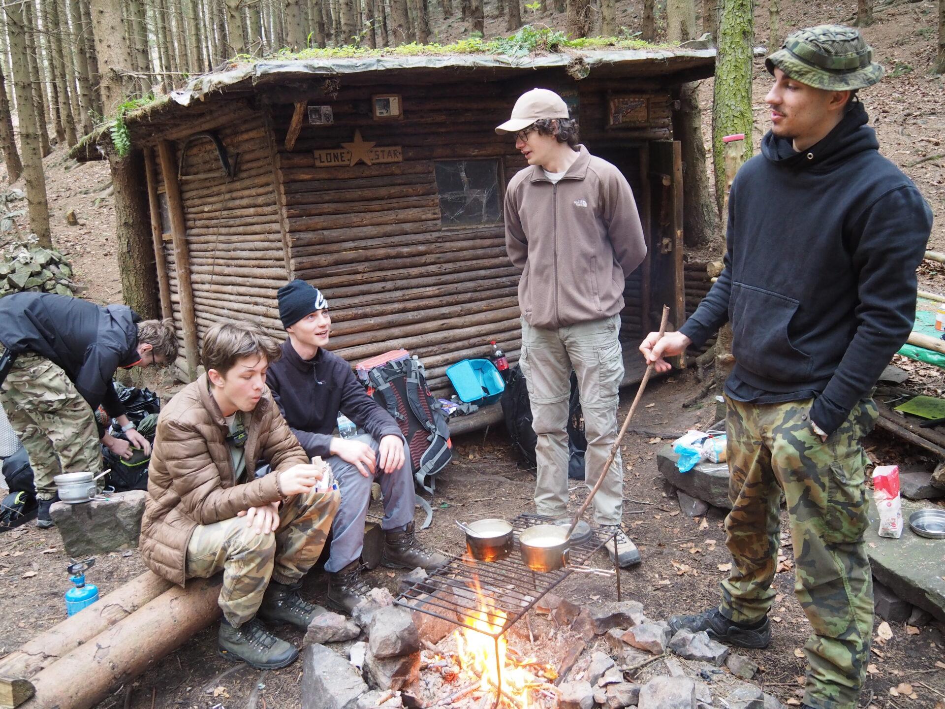 V pátek v podvečer 11. dubna 2025 jsme vystoupili s našimi nejstaršími rangery v Jincích z vlaku a vyrazili do kopců Malých Brd. Našli jsme trampský kemp Lone star a utábořili se tu na noc. V sobotu jsme putovali brdskou hřebenovkou přes rozhlednu na Studeném vrchu a dostali se až k Voznickému potoku, na kterém se nacházejí vhodná místa k táboření. Bylo krásné počasí, sluníčko, 20°C a tak nebylo divu, že vyhlídnuté trampské kempy byly již obsazené. Namířili jsme to tedy z údolí na cestu a k jinému potoku, na kterém se mělo nacházet legendární Zlaté dno. Ač je to tak významné místo, není nikde na mapách vyznačené, ani k němu nemíří žádné ukazatele. Někdo kdysi napsal, že „cestu na Zlaté dno si musí najít každý sám“ – onoho odpoledne se nám to podařilo. Je to pietní místo, které připomíná památku na padlé trampy v boji proti fašismu za II. světové války, zvláště pak na Jerryho Packarda a Billa Brochese. Jezdili sem už na konci 20. let a měli brdské hřebeny prochozené křížem krážem. Smysl pro čest a spravedlnost přivedl tyto trampy hned na začátku okupace do protinacistického odboje. Jejich důkladná znalost terénu včetně přilehlého brdského vojenského prostoru, který za války sloužil wehrmachtu a vojskům SS, umožňovala získávat cenné informace a předávat je dál. V roce 1942 byl Packard zatčen gestapem ve Volyni na Šumavě. Byl uvězněn v Praze na Pankráci a odtud dopraven do koncentračního tábora v Osvětimi, kde v roce 1943 zemřel. Obdobný osud stihl i jeho kamaráda Ladislava Brožka zvaného Bill Broches. „Pozdravuj moje lesy, moje milá, a všechny kamarády trampy, všem posílám kus svého srdce, měl jsem je tak rád. Schází mi moje kytara a naše písně, Tvoje dlaň a můj maly… Buďte stateční a nikdy nezapomínejte na svoji cestu mužů, svoji čest, boj za vlast je to nejpřednější, nikdy ji nezraďte“. Napsal Bill Broches své ženě několik hodin před svou popravou dne 11. 1. 1943 ve věznici Plotzensee u Berlína. Proti proudu potoka jsme našli pěkný trampský kempík a navečer se tu utábořili. V noci jsem se trochu budil, přeci jen už jsem si odvykl jezdit ven jen s usárnou a spát na holé zemi na celtě bez karimatky. Za to jsem poprvé v životě v noci uslyšel „kvorkání“ sluky lesní – zvláštní hlas, kterým sameček během toku láká samičku. V neděli po snídani jsme vyrazili na vlak do Nesvačil a po cestě ještě navštívili bývalou raketovou základnu, které se přezdívá Klondike. Touto výpravou jsme zakončili společně trávené víkendy s nejstaršími rangery, kteří už v tomto, nebo minulé roce dospěli do věku dospělých.